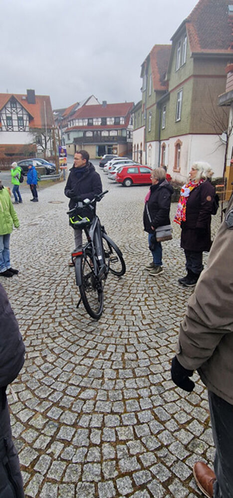 Philipp Thoma informiert die Teilnehmer des Ortsrundgaangs
