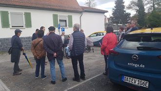 Interessante und wichtige Informationen erhielten die Bürgerinnen und Bürger beim Ortsrundgang mit Bürgermeister Philipp Thoma durch den südlichen Teil von Niedernhausen wie z. B. E-Carsharing, das den Menschen umweltfreundlche Mobilität bietet.